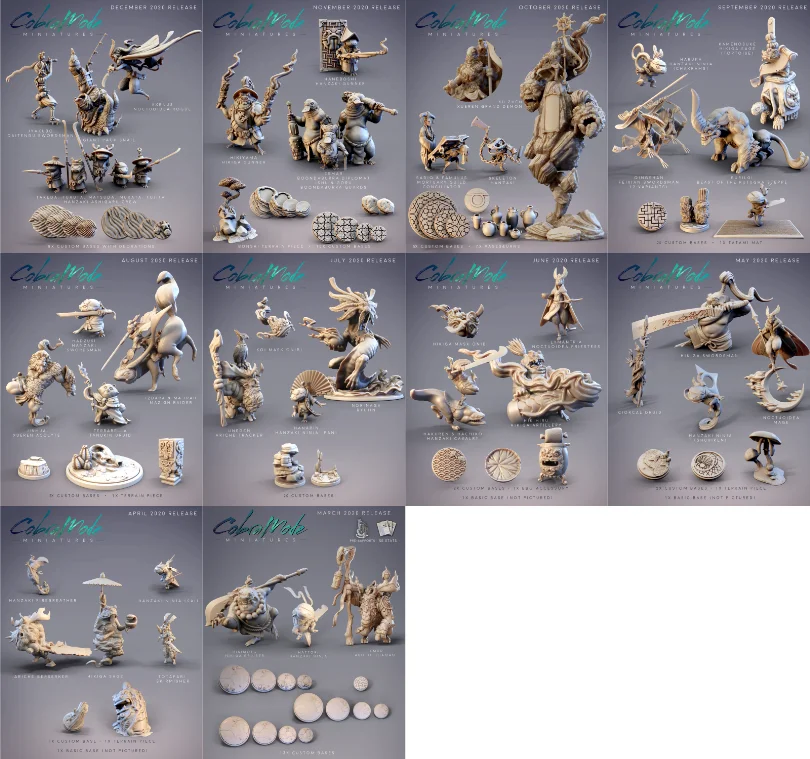 December’s collection is focusing on the Tengu, whom we haven’t seen in a little while. Though we’ve been near the Demon Gate of Despair with the Sarugami, we can’t neglect the role of the Daitengu. The Zuijin have wide ranging battle skills, from swordsmen like Hikenbo and Kenseibo, gunners like Hokibo, and magic/ritual users like Daranibo. We even have artificial tools like the Daitengu Marionette, controlled by Kotenbo from our February 2022 collection of Daitengu Outlaws 👀
