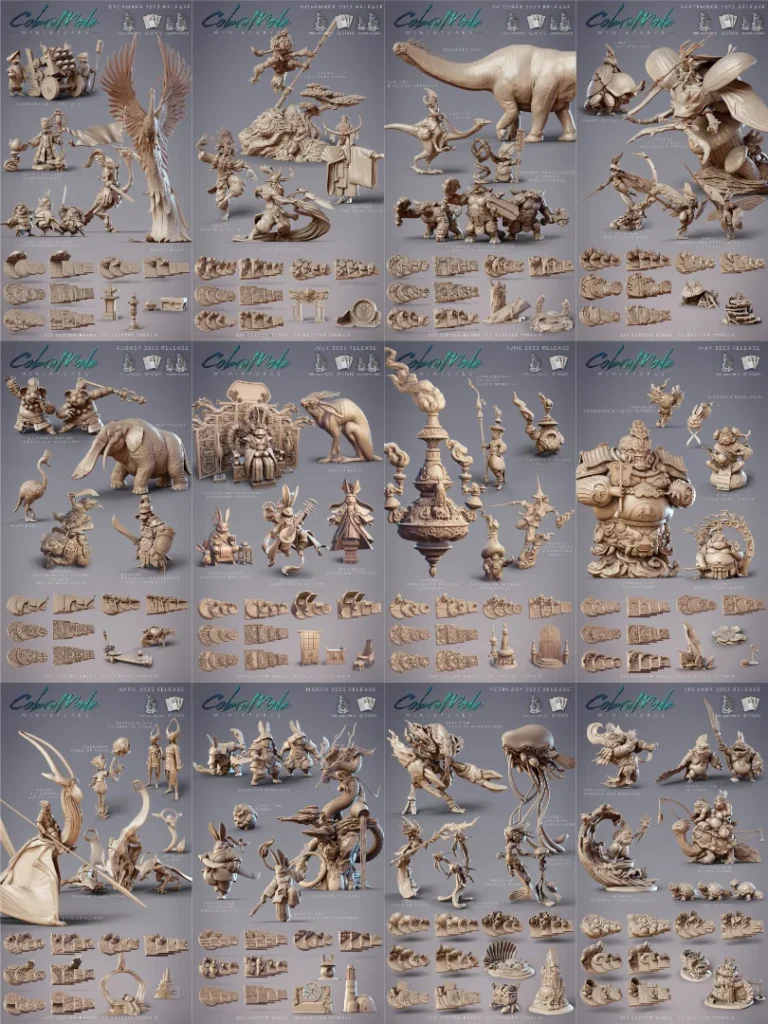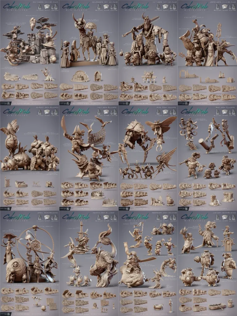 Calrais sculpted our fantastic bases and terrain this month, with concept art from Paul Ferret. We have two base and terrain packs in our Throwbacks also, fittingly one that goes with last month’s collection, and one that goes with this month! Alongside those, we have some Nemesis minions who make great smaller mobs for an encounter.