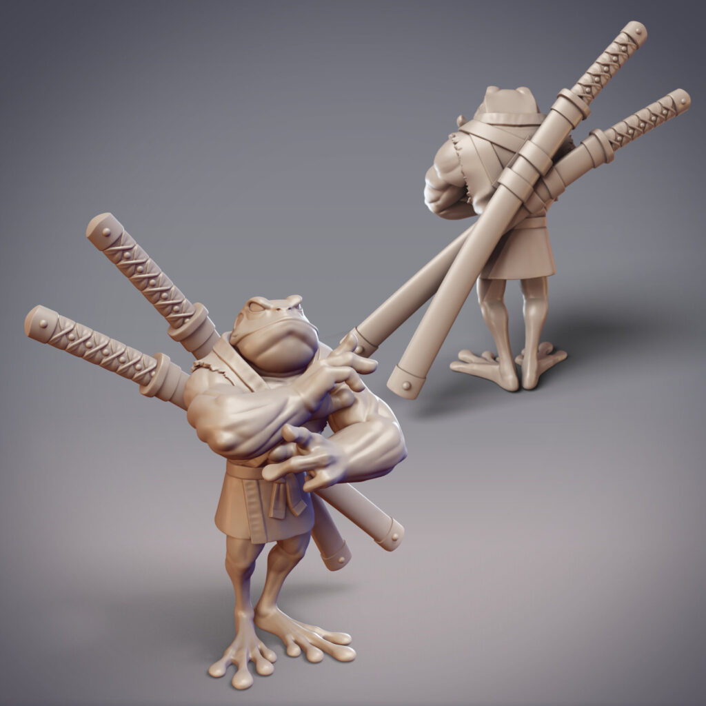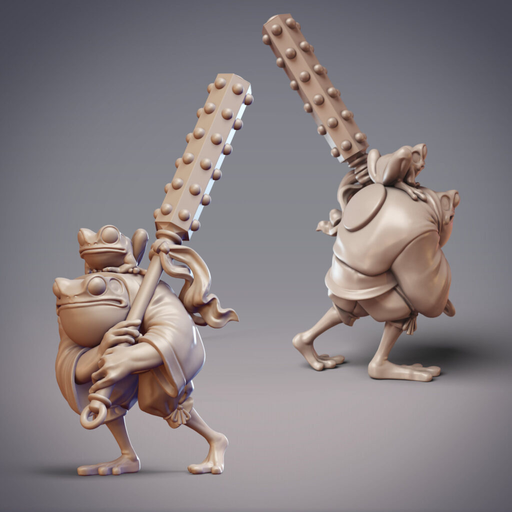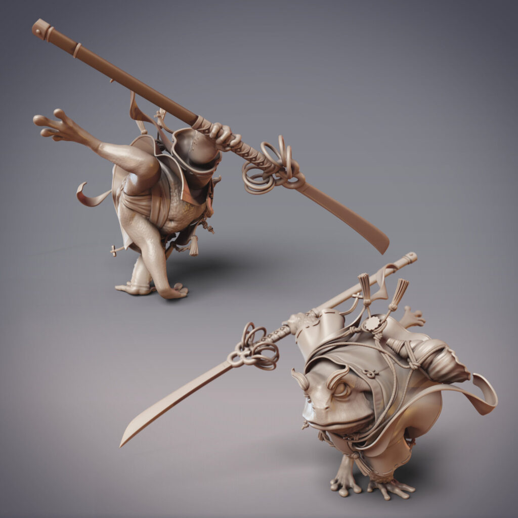 January is a froggy month, as we adventure alongside the Amagaeru and Numakai in the Uragakure Barrow Realm. This swampy realm is tied to a secret entrance somewhere in the Mikata Wetlands, which rogue Hanzaki have accessed in order to hatch an unsanctioned Ryujin to start their own clan. In comparison to the Hikiga toad folk who live in the Mikata, the Amagaeru are frogs with much more acquatic prowess, lithe and acrobatic in contrast with the stolid Hikiga. Much closer to them are the Numakai, also toad folk, but who much more closely resemble their animal brethren (including their large variance in size and appearance).