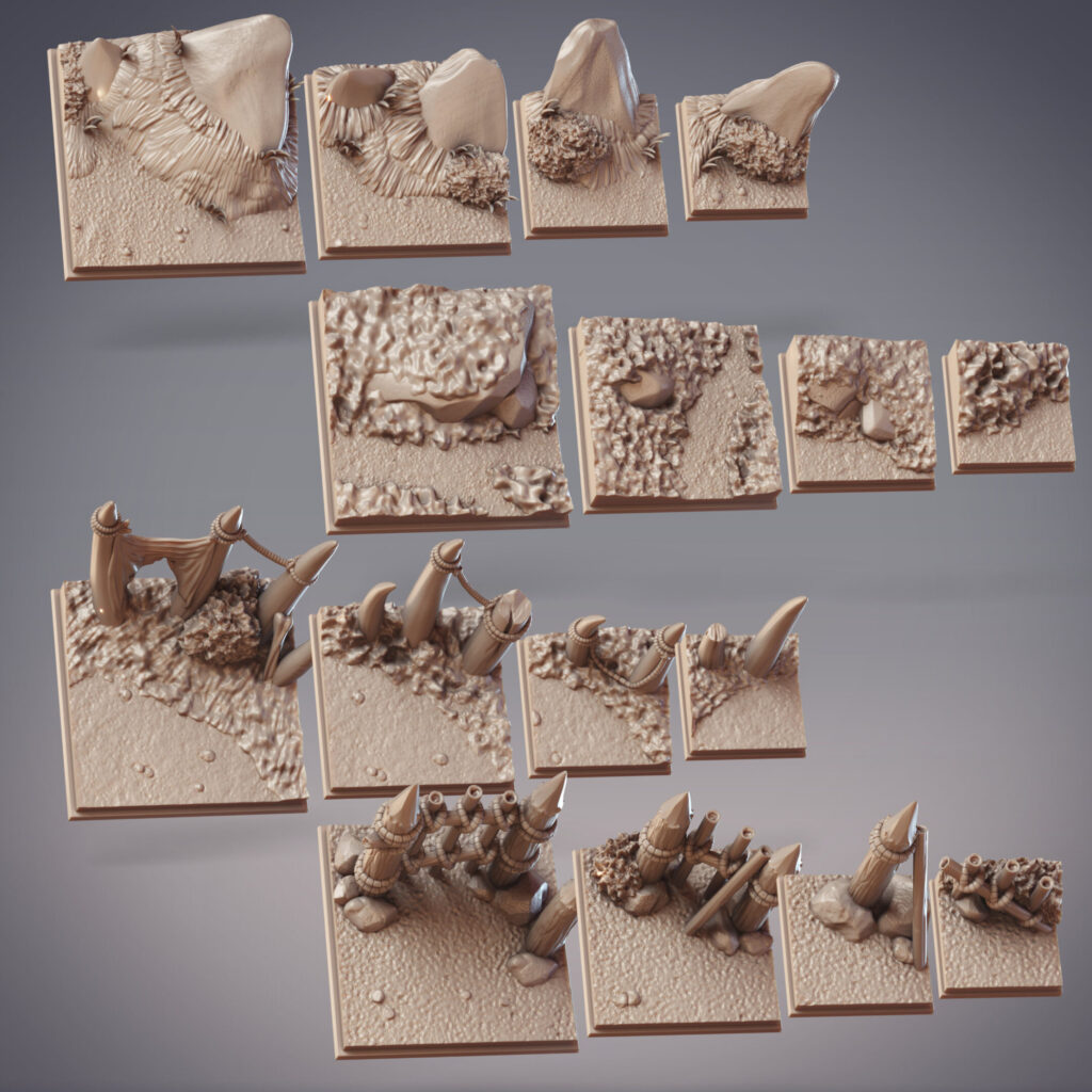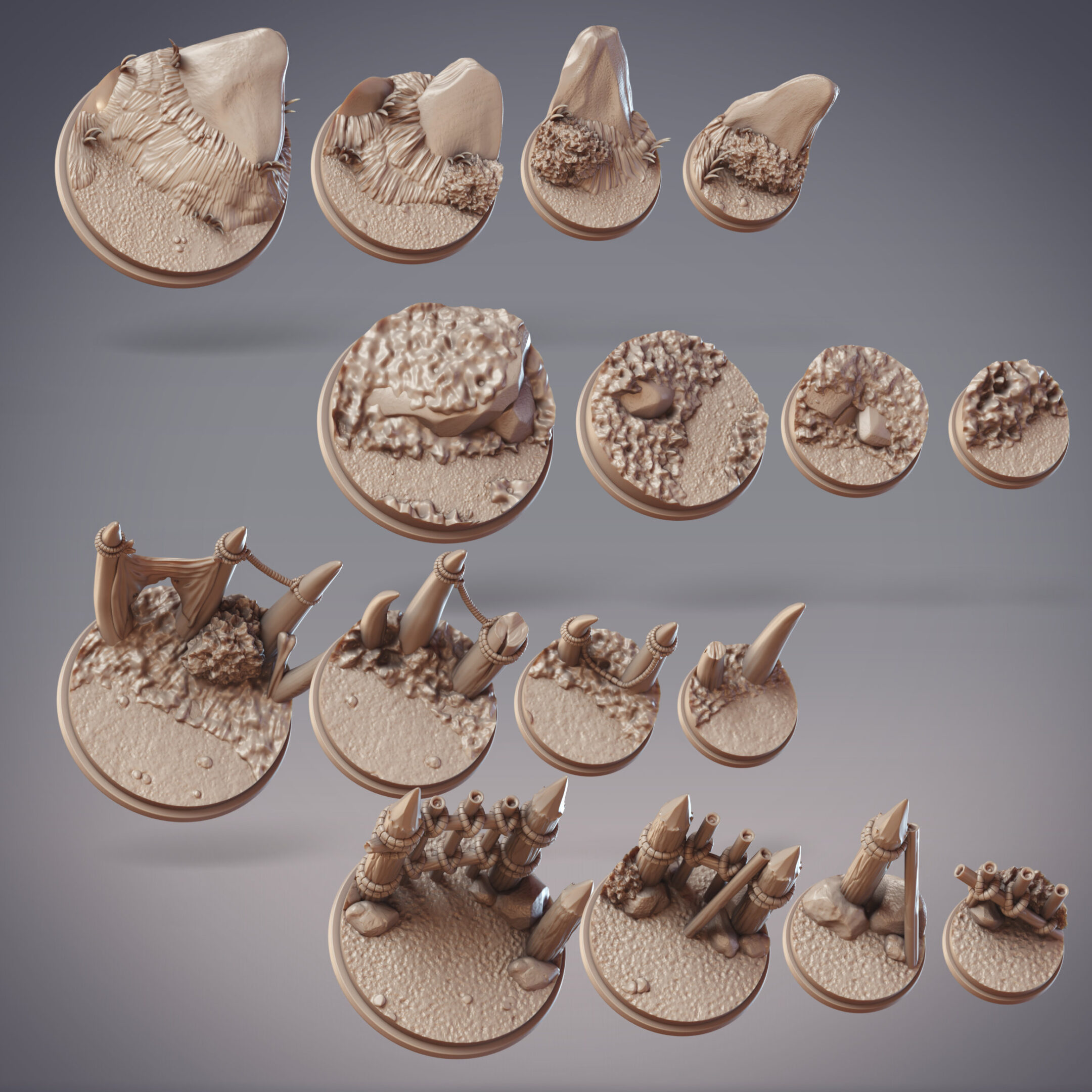 We have 32 custom bases again this month, in circular and square format, courtesy of the fabulous TheBetaMarie! She also helped sculpt some of the details on the Ariche Beast Riders, including elements of the pack and clothing (although the “signature feature” of the Ariche was added by Yours Truly). And lovely renders were done by Calrais, as usual.